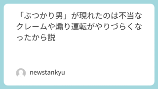 時評 「ぶつかり男」が現れたのは不当なクレームや煽り運転がやりづらくなったから説 一時期ほどではないが、今でもよく話題となる「ぶつかり男」「ぶつかりおじさん」という存在。ひとつ不思議だったのは、なぜ最近になって騒がれるようになったのかということだ。おそらく最近になって「ぶつかり」を行う者が現れ、それが同時多発的に広まって... 2025.09.27 時評